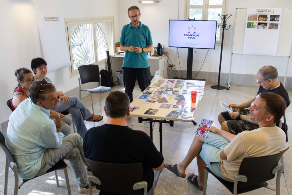 La jornada, després d’un esmorzar relaxat, va començar amb una dinàmica en la que les persones participants expressaven com arribàvem emocionalment a la trobada. Per fer-ho, podien triar una imatge que els servís com a metàfora per expressar amb quin estat d’ànim, expectatives, etc. arribàvem a la jornada. Es van expressar idees com il·lusió per la jornada, confiança en trobar el camí tot i que el context no sigui el més favorable, equilibri personal, cert estrès en el procés per arribar a la sessió, etc.