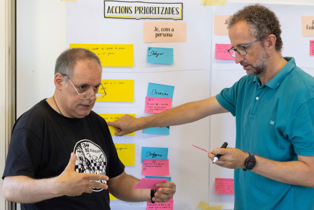 Un cop feta la reflexió sobre el context en què es troba la federació, i d’haver identificat possibles dificultats i oportunitats, es va demanar a les persones participants que prioritzessin aquelles accions que consideraven que són les més estratègiques i viables en el moment actual. Per fer-ho cada participant disposava de 6 gomets que podia assignar lliurement a les accions recollides en la proposta de pla d’acció.